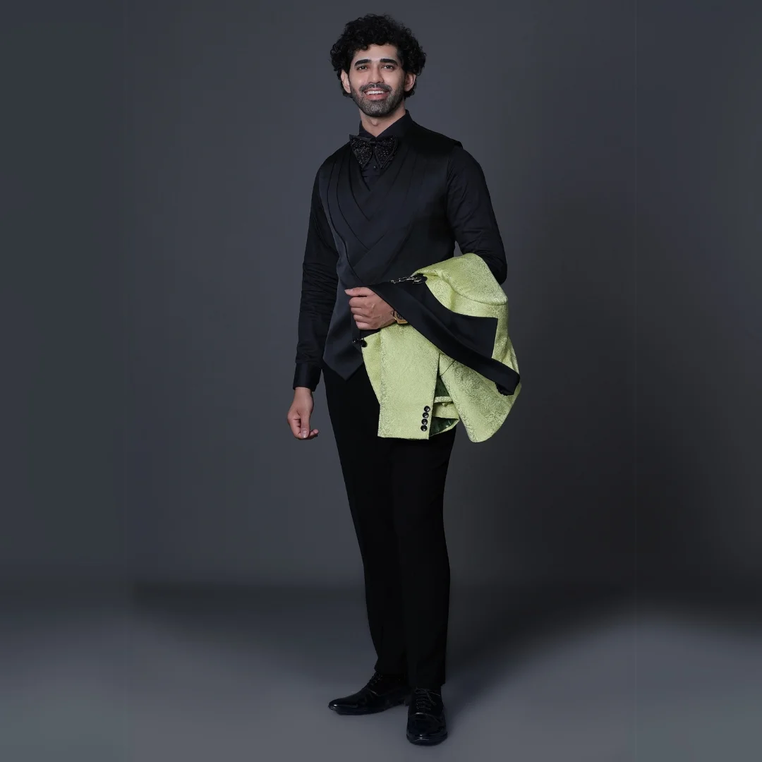 Package contains : 1 Bow/ 1 Trousers/ 1 Cote/ 1 Waist Coat/ 1 shirt