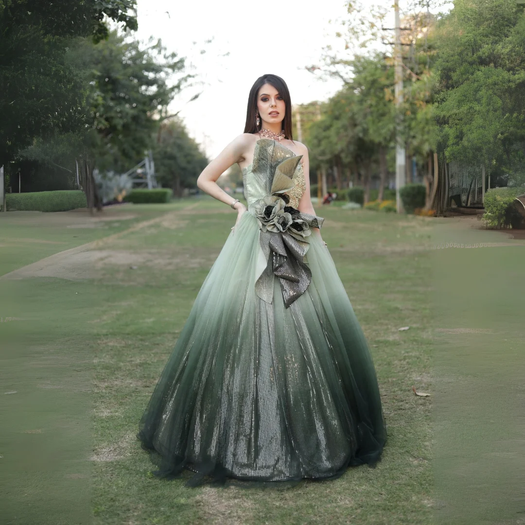 3D Detail Ball Gown ombré Shaded