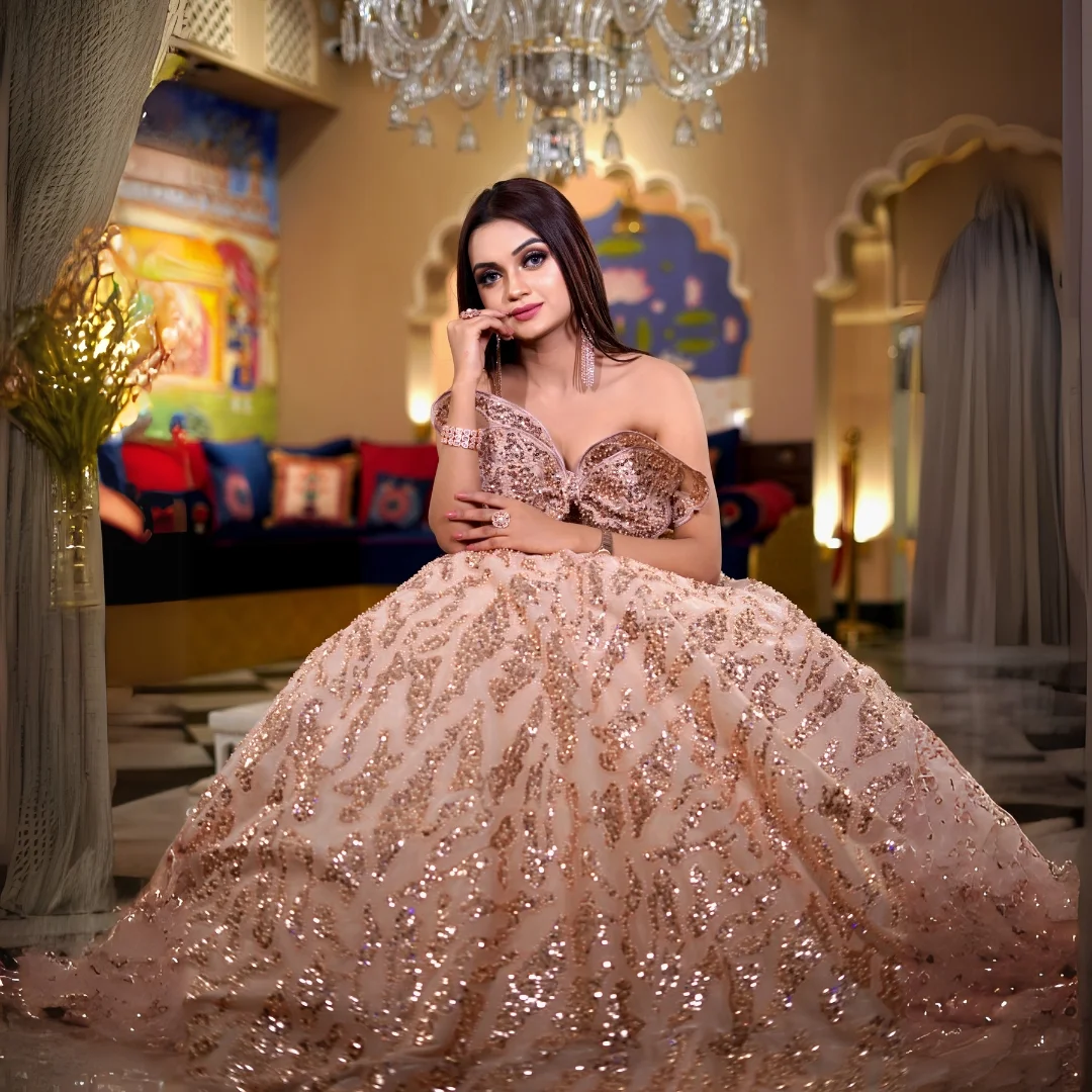 Sequence work ball gown